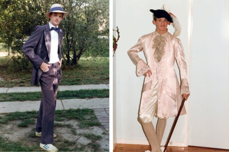 I had a trunk full of my mum and dad’s old clothes — ties, beads, scarves, and just enough crushed velvet to raise a few eyebrows. Many days I looked like Steven Tyler’s understudy, waiting for my big break.